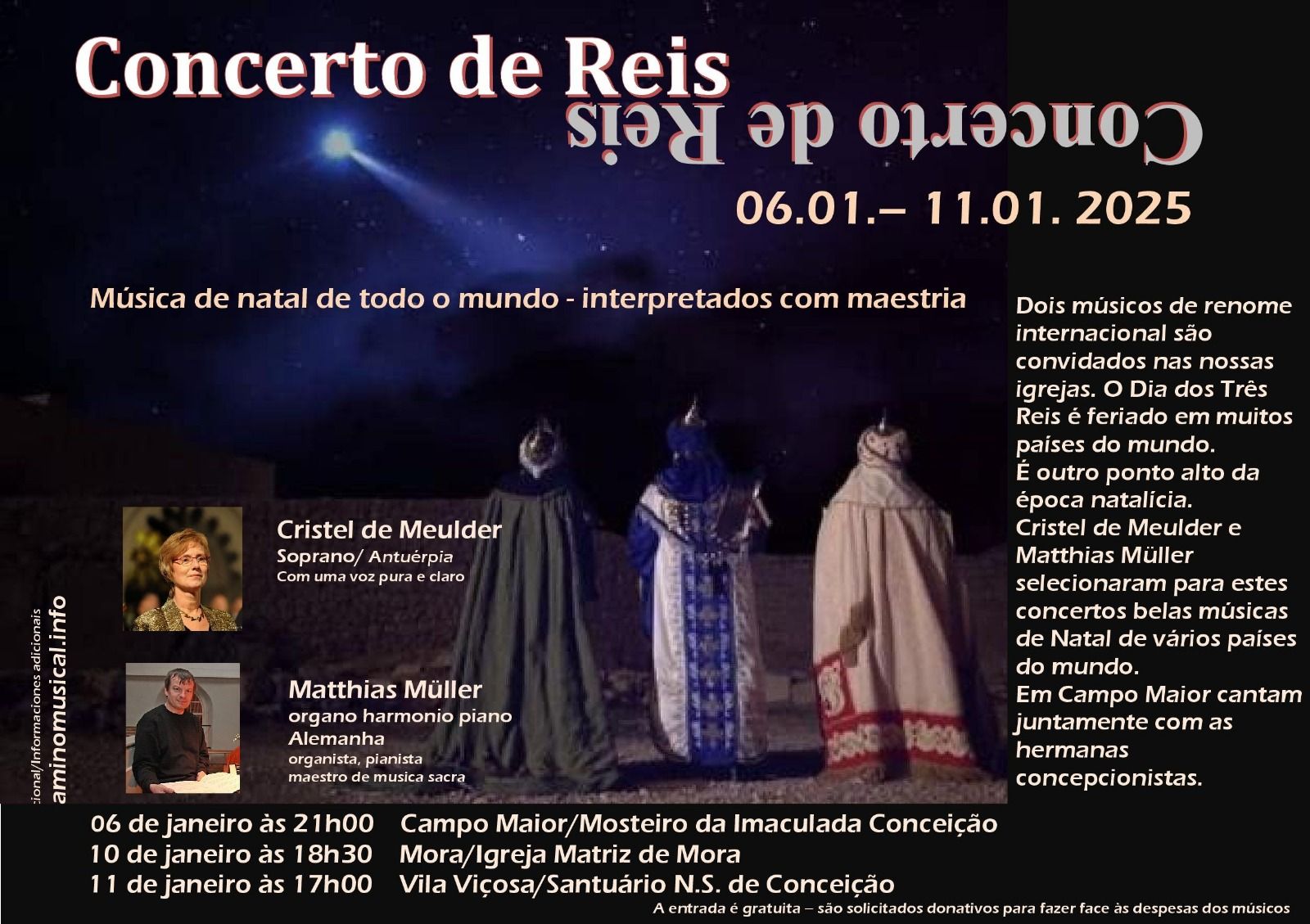 Tocarão músicas lindas e finas. Composições que foram compostas para a época do Natal e também especificamente para o Dia dos Reis Magos.