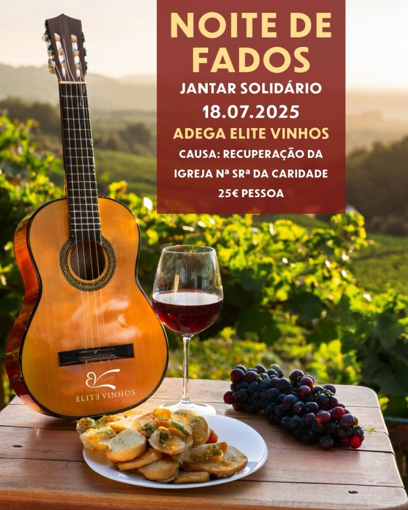 A 18 de julho, na Adega Elite Vinhos decorrerá uma Noite de Fados, que inclui um jantar solidário, cujas receitas revertem para a recuperação da Igreja Nossa Senhora da Caridade, no concelho de Reguengos de Monsaraz.