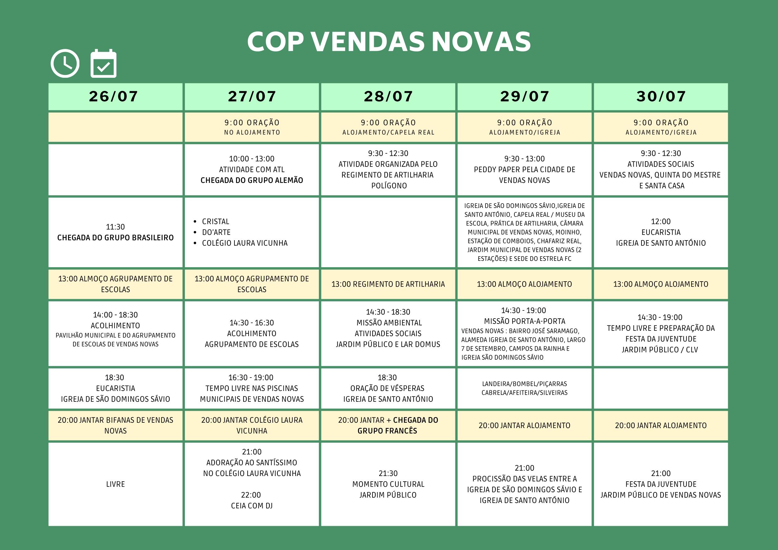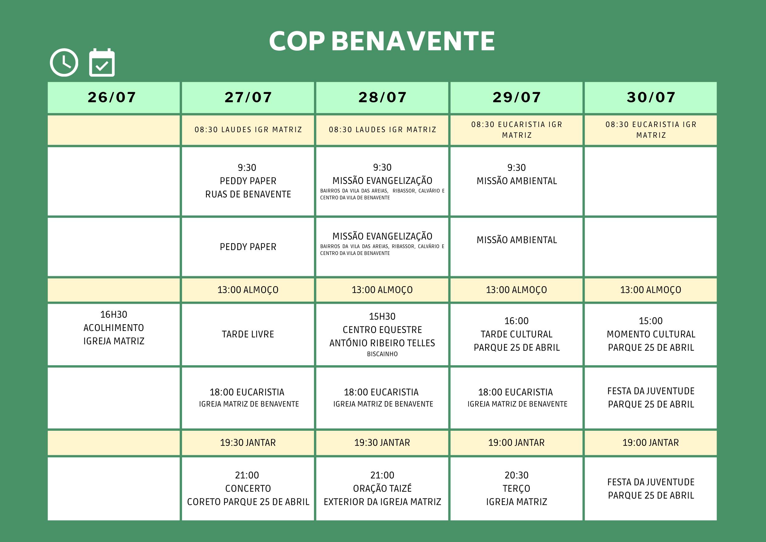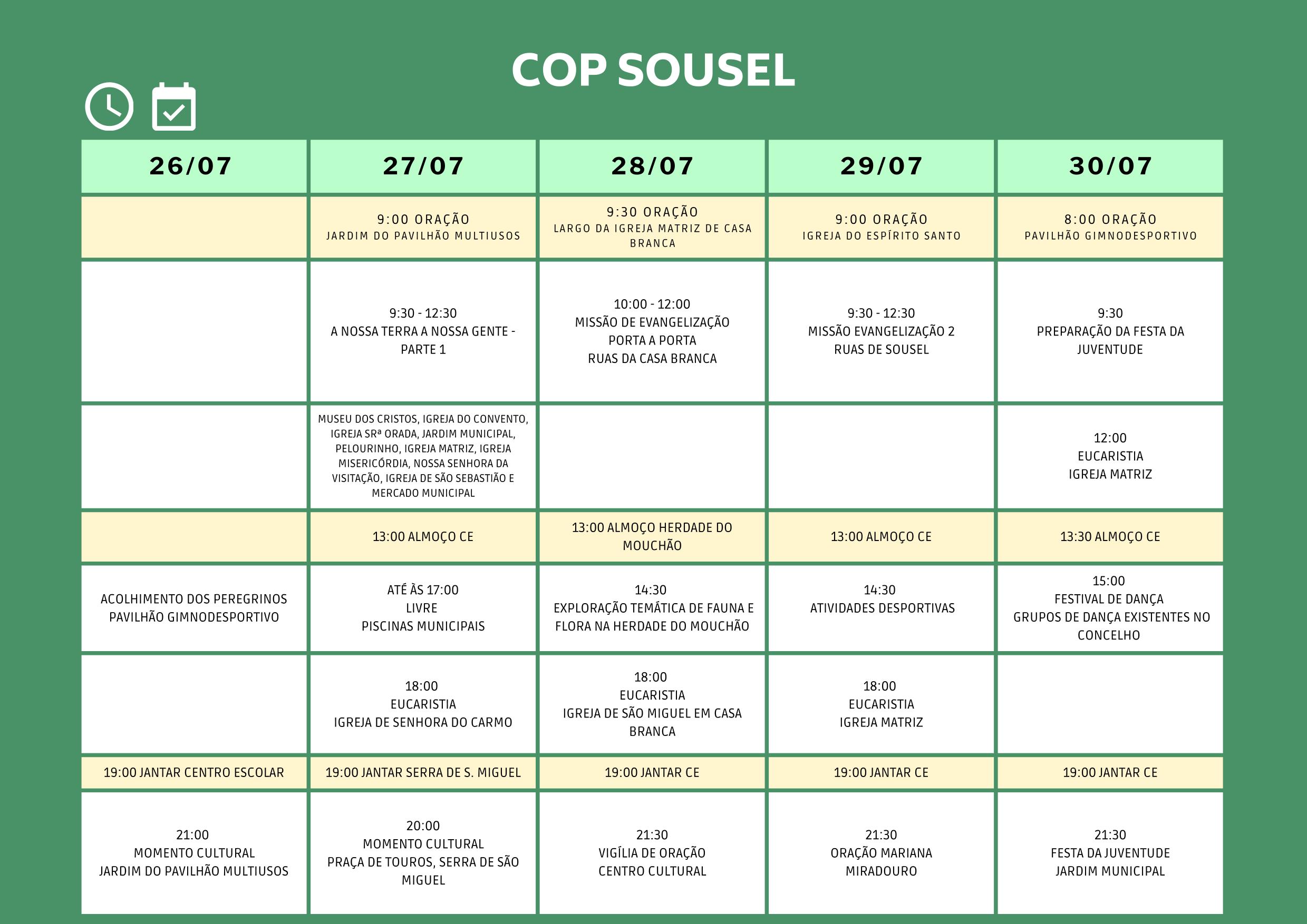 Fique aqui a conhecer todos os programas de todos os COP’s da Arquidiocese de Évora que irão acolher jovens peregrinos estrangeiros nas suas paróquias.
