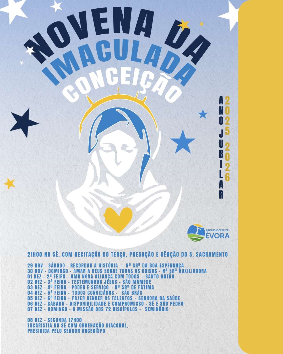 29 de novembro a 7 de dezembro, na Catedral de Évora: Novena da Imaculada Conceição