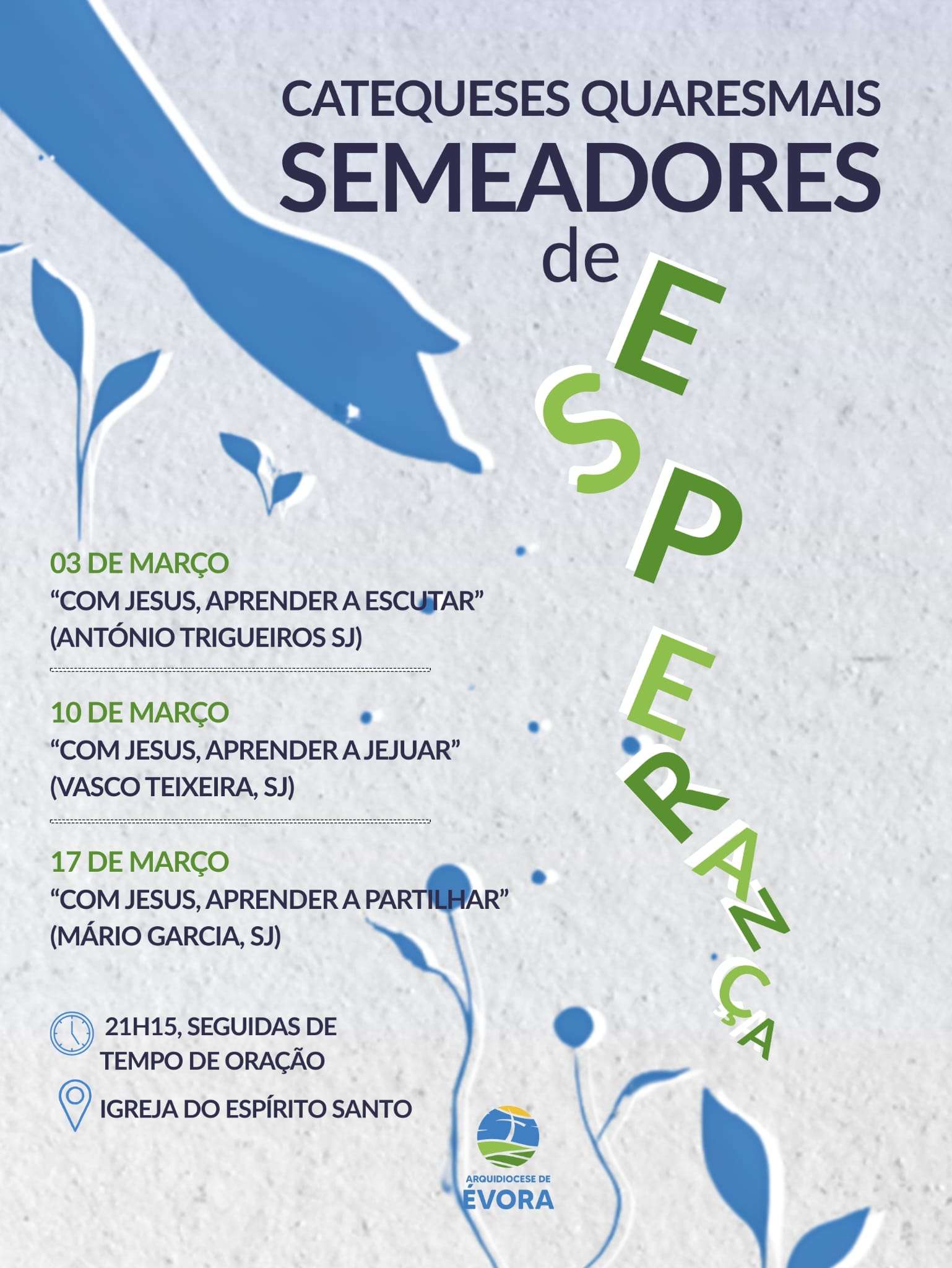 As Catequeses Quaresmais deste ano têm como centro o tema do Ano Pastoral: “Semeadores de Esperança”. Estas, serão conduzidas pela comunidade jesuíta presente na  Arquidiocese de Évora.