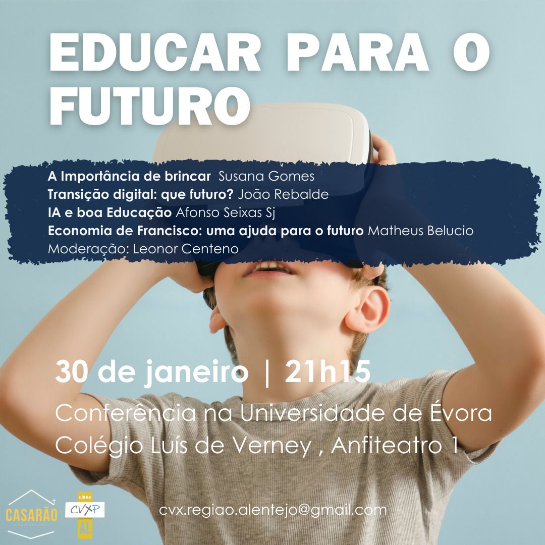 30 de janeiro, às 21h15, em Évora: CVX Além-Tejo e a Pastoral Universitária da Universidade de Évora convidam para um serão sobre “Educar para o futuro”