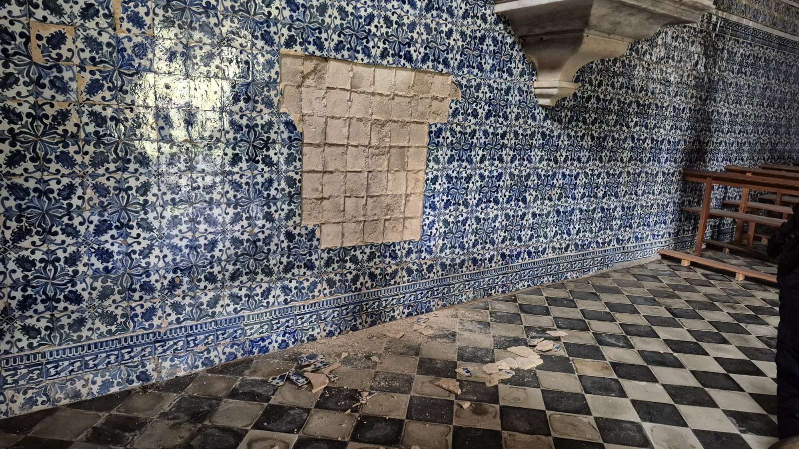 Segundo o Padre António Sanches, pároco, foram roubados três painéis de azulejos do século XVIII, de um total de seis existentes, representando a vida de São Bento.