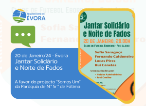 No dia 20 de janeiro, a partir das 20h, no Clube de Futebol Eborense, ao Frei Aleixo, em Évora, decorrerá