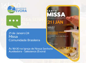 No próximo Domingo, dia 21 de janeiro, às 16h30, a comunidade brasileira presente na Arquidiocese de Évora, reúne-se na Igreja