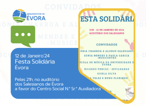 Nesta sexta-feira, dia 12 de janeiro, pelas 21h, decorrerá no Auditório da Escola dos Salesianos de Évora a Festa Solidária
