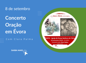No dia 8 de setembro, na igreja de Nossa Senhora de Fátima, em Évora, decorrerá um Concerto-Oração.