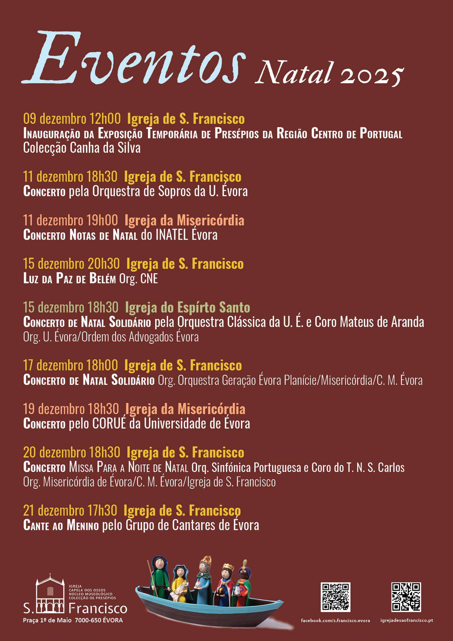 Dezembro’25: Calendário dos Eventos de Natal nas igrejas de S. Francisco, Espírito Santo e Misericórdia de Évora