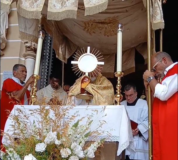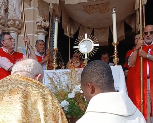 “Hoje é uma quinta-feira santa alargada, por isso vamos para a rua em Procissão. Que a nossa procissão seja este louvor ao Senhor connosco, deste povo sacerdotal que oferece a sua vida porque recebe a vida de Deus, seu alento, seu alimento. Sejamos em louvor ao Senhor pela Eucaristia, um povo que diz amen porque estás em nós, porque nos envias como povo missionário a partir o pão da esperança por este mundo faminto que te procura, sem saber que te procura. Amen”, concluiu o Arcebispo de Évora.