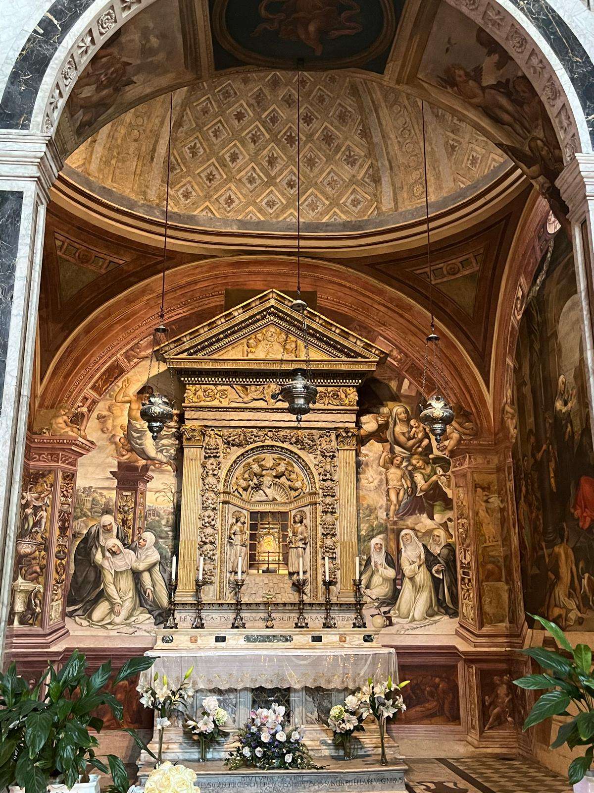 Iniciamos a visita pela Basílica de São Domingos. Ali rezámos diante da relíquia de santa Catarina, visitámos a cidade e os seus mais emblemáticos monumentos como a casa de Catarina, a praça do Palio… e partimos mais enriquecidos tendo presente que Catarina, mulher que luta incansavelmente pela paz da Igreja o regresso do Papa a Roma, nos convida a espalhar o Evangelho mediante o seu testemunho de vida. Disse Ela: “não nos contentemos com as coisas pequenas, Deus quer coisas grandes! Se fossem o que deveriam ser incendiariam de Fé toda a Itália”.