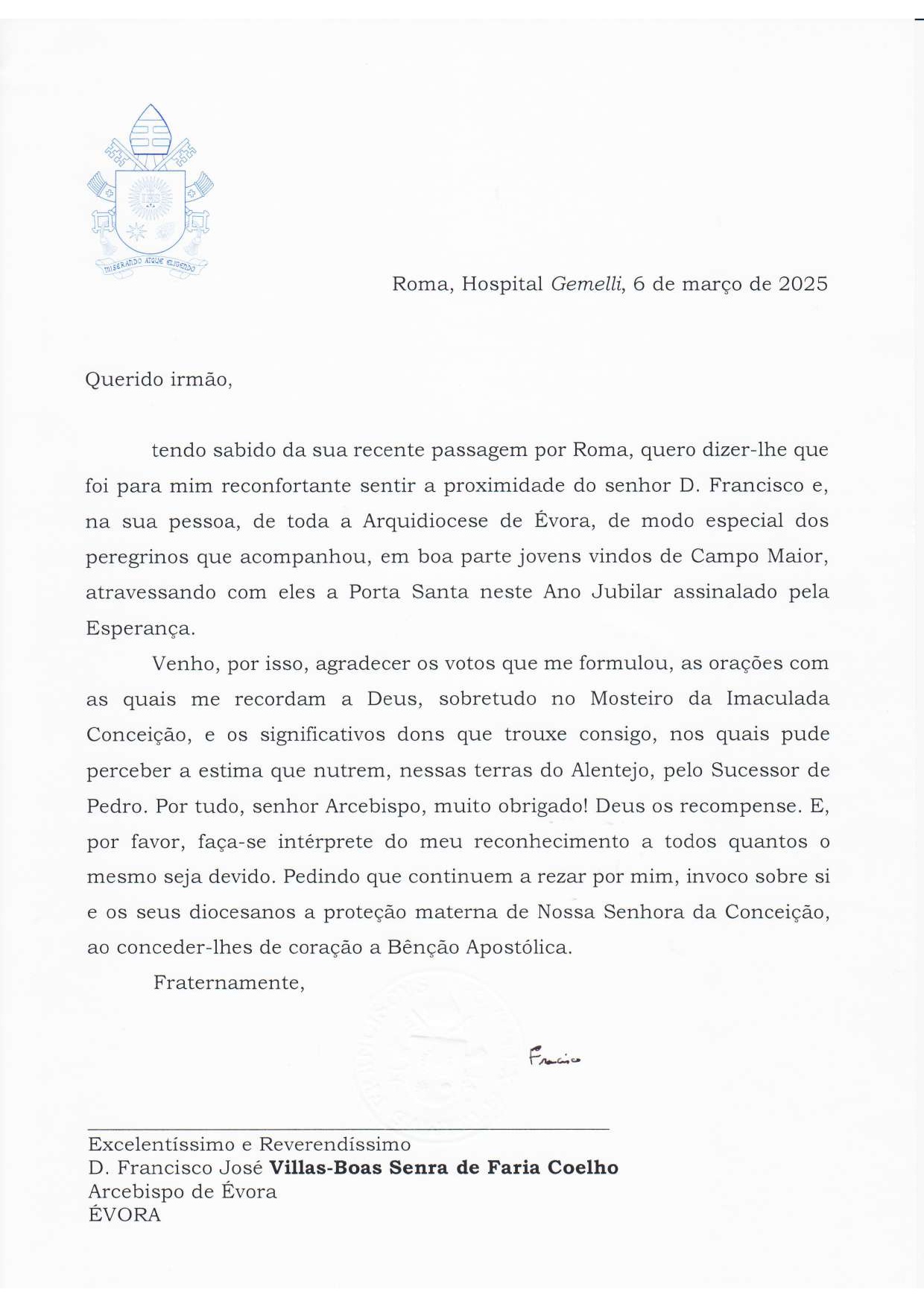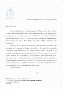 Papa Francisco envia Mensagem e Bênção Apostólica aos Peregrinos da Arquidiocese de Évora que peregrinaram a Roma (com documento)