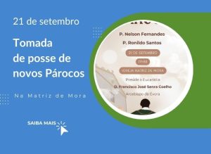 No dia 21 de setembro, pelas 17h30, decorrerá a celebração de Tomada de Posse dos Párocos P. Nelson Fernandes e