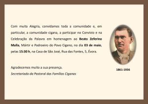 O Secretariado da Pastoral das Famílias Ciganas da Arquidiocese de Évora convida com muita alegria toda a comunidade e, em