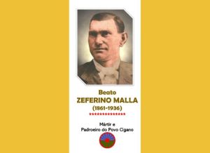 A Ir. Pilar do Rosário Jurado Diaz Moreira, do secretariado da Pastoral dos Ciganos, partilha um cartaz do Beato Zeferino